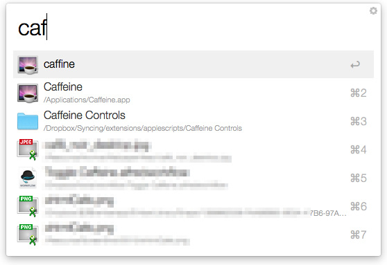 比如我曾经在 Pinapps 中推荐过的屏幕休眠管理应用 Caffeine,每次想要激活它只有去顶部菜单栏里找,有时眼神不好得瞅半天。有了这个小插件,只需要激活 Alfred 输入 caf(可自行定义)就搞定了。