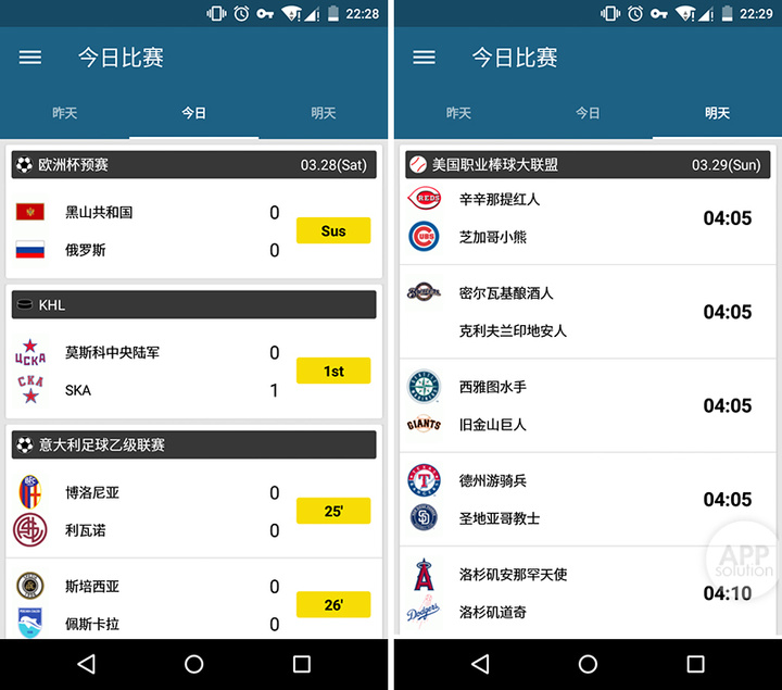 实时比分中心 LIVE 已收录了足球、棒球、篮球、高尔夫等多个项目和联赛,开发者承诺将不断添加项目和联赛,有需要的用户也能通过邮件沟通添加。