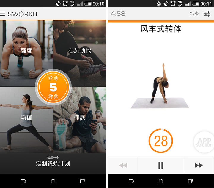 Sworkit 适用于 iOS 7.0+ 的 iPhone 或 iPad,大小 77.2 MB,免费,Pro 版售价 18 元;同样适用于 4.0+ 的 Android 设备,大小 29 MB,免费,Pro 版售价 $2.99。