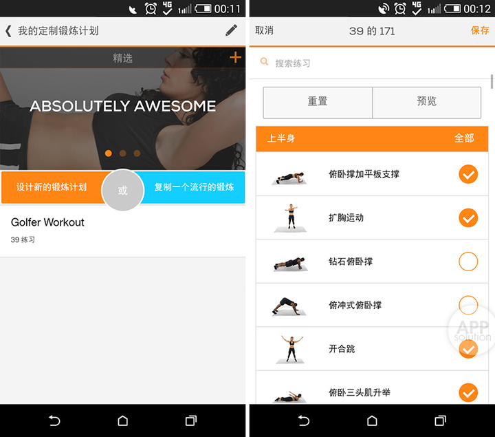如果你希望自己的身体循序渐进的进入佳境,那么制定一个训练计划也是不错的选择。点击首屏底部进入定制锻炼机会的界面,之后你可以选择新的锻炼计划或者复制一个流行的锻炼计划。在这里你将可以随意组合上述四大类共 171 项训练内容作为你的私人锻炼计划。