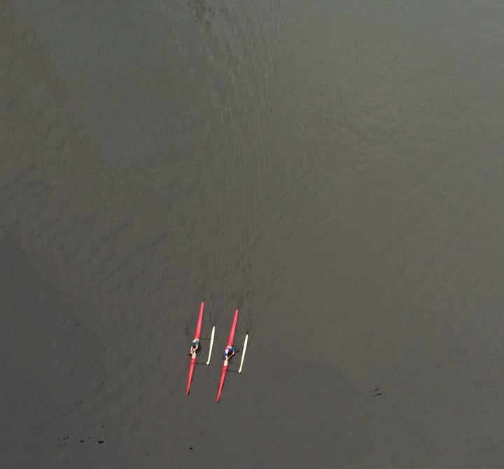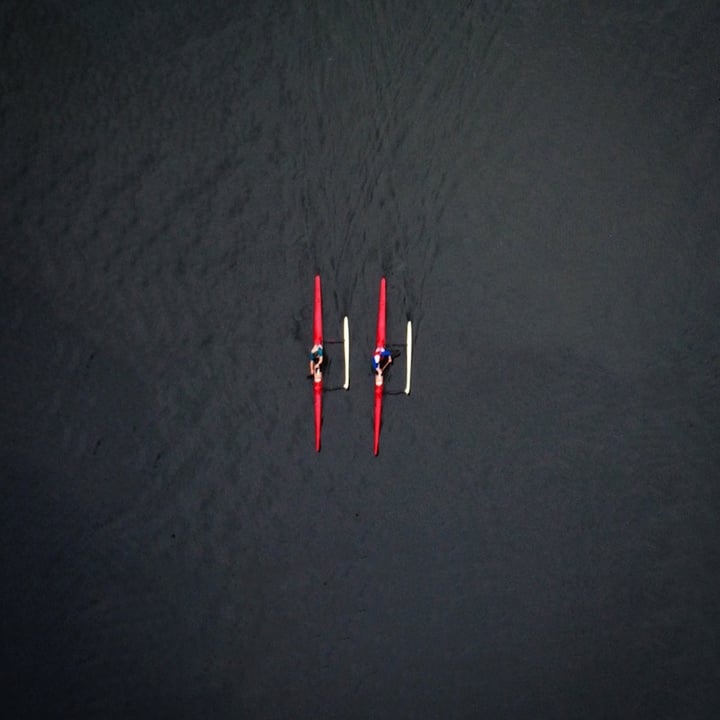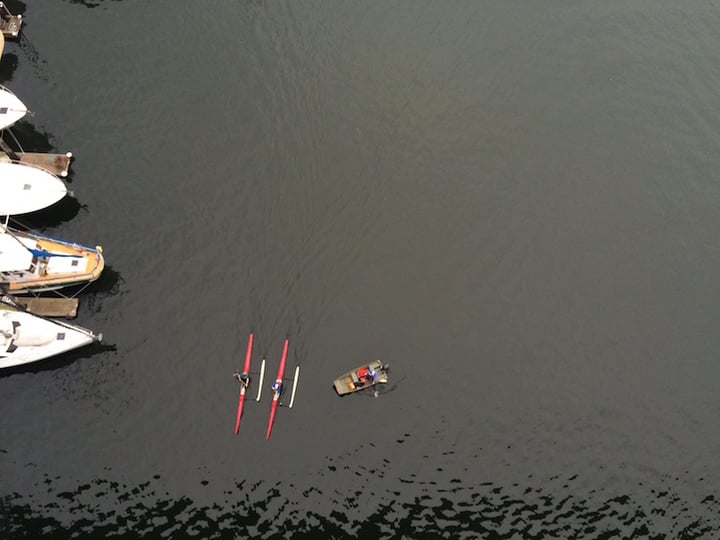 先给看下最后发在 Instagram 的成品图。这个是在温哥华的一座大桥上拍到两个皮划艇玩家,有航拍的感觉。