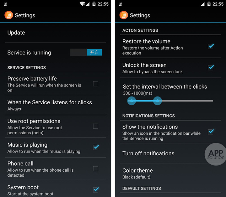 除此之外,QuickClick 还有省电模式,使快捷操作仅在屏幕开启的状态下被触发,减少电量消耗。你可以将音乐播放和通话状态设为例外情况,也可以通过设置击键的间隔时间来区分正常的音量调整和快捷启动操作。