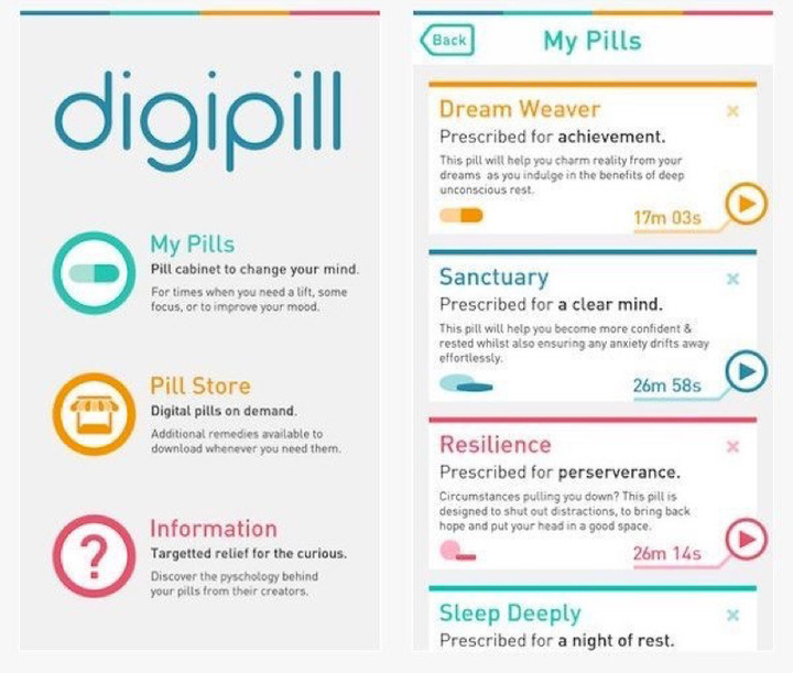 不过催眠这种事,只要你信它有效,就是好的。Digipill 作为一个应用,目前已经提供了 16 种不同的催眠「药片」,从晚上好好睡觉、到白天休息 15 分钟、再到集中注意力乃至戒烟和减肥都有对应的药片。