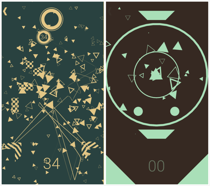 碰撞与碎裂感极强的视觉设计让你一旦开始就停不下来,小球每一次碰撞带来漫天飞舞的碎片,将利用重力感应设计的漂浮感与小球的碰撞感结合起来。在重新开始的时候,游戏中还贴心地设计了虚线表示上一次小球甩出的方向,以便玩家参考与微调。