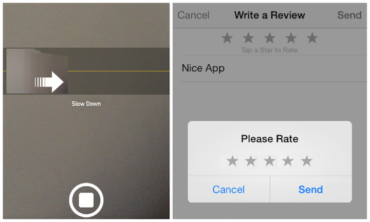 再比如,在 App Store 中填写评价时若未评分就发送,则会弹出提示框并可以在其中直接进行评分操作。