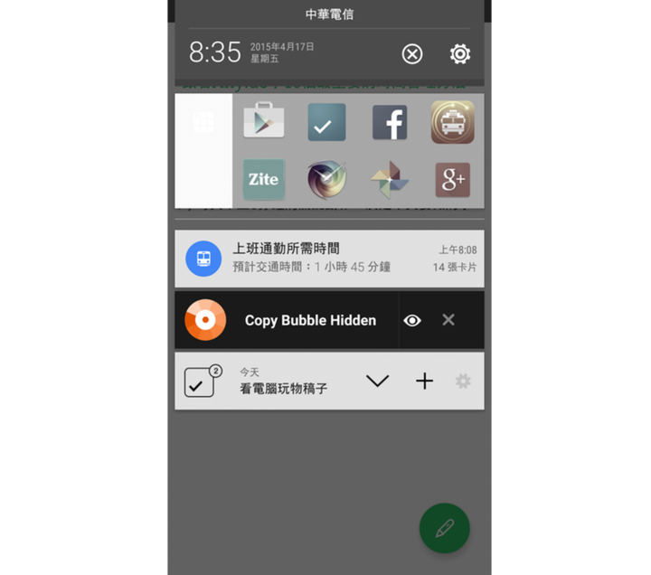 这时候, Any.Do 在设计上会在 Android 的下拉选单中常驻出现「下一个任务」,而且一次就只有一个任务(可以手动切换今日任务),让我们「聚焦」在接下来最重要的一件事情上,即使待办清单还很长,但我们永远也只能一次做好一件事情,不是吗?