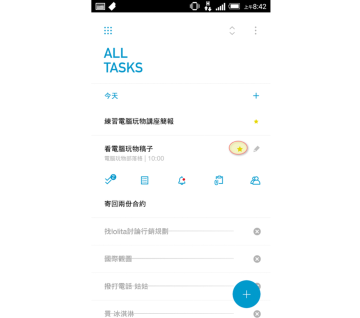 在 Any.Do 中,可以透过帮任务「加上星号」这个功能,来突显一件任务的关键地位。