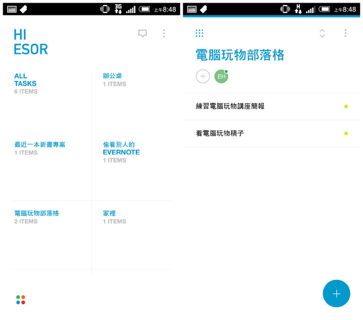 在最新版 Any.Do 3.0 中,甚至还新增了鸟瞰视野,让你可以在方格中总览每一个任务分类资料夹的任务数量,排序任务分类资料夹的顺序,并且点进某一个任务清单中专注在这份清单的工作上。
