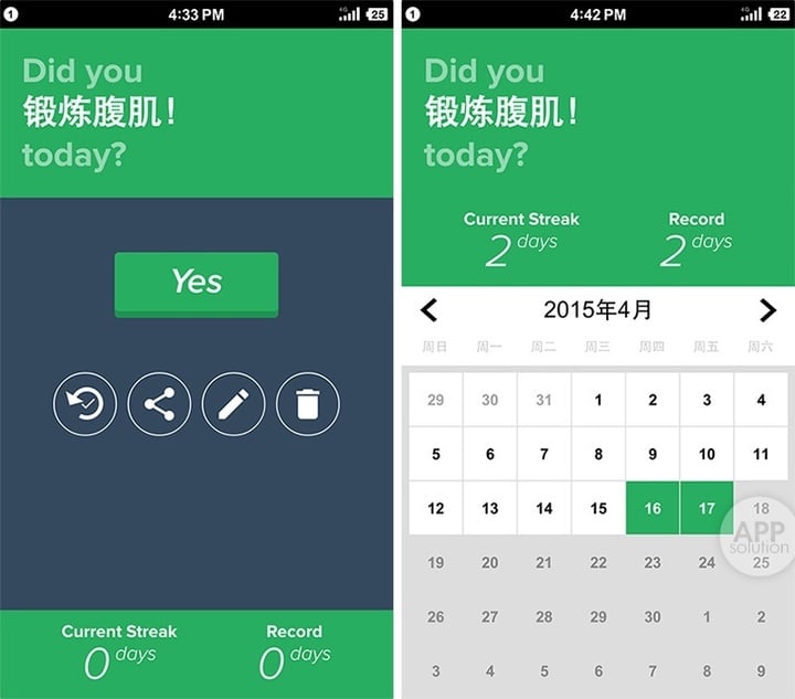 在设定了时间后,它会在通知栏及时地提醒你。点击下方的日期查看详细情况,不必担心错过之前的打卡,随时都能补签回来。