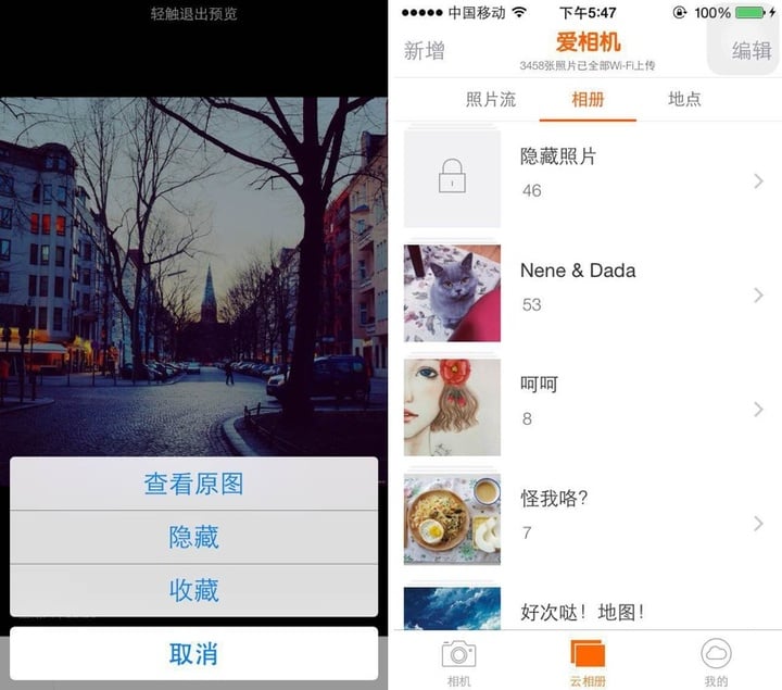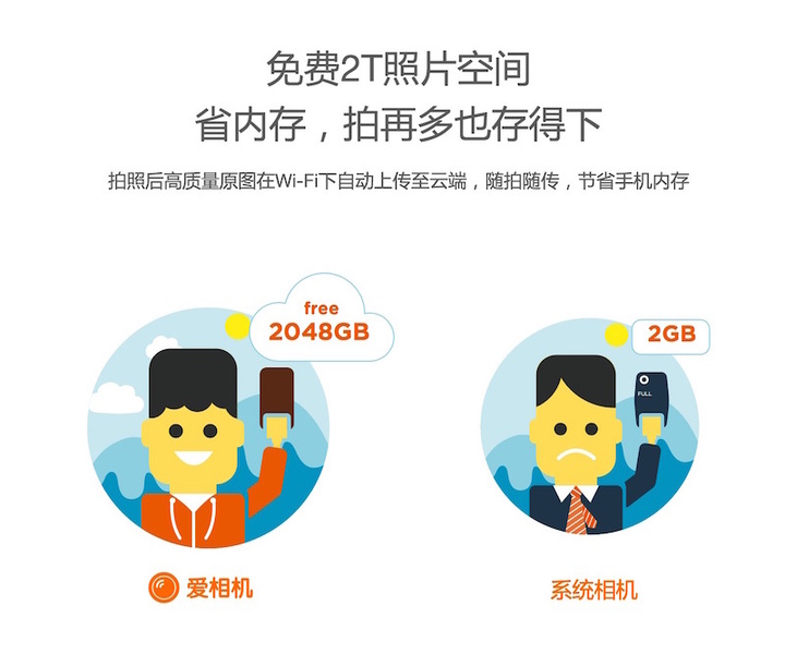嘿嘿,关于这个问题,你大概漏掉了 A 君以前安利的「爱相机」。这是一款将照片拍摄、美化、存储、管理、分享集为一体的「云相机」app,体验相当出色。