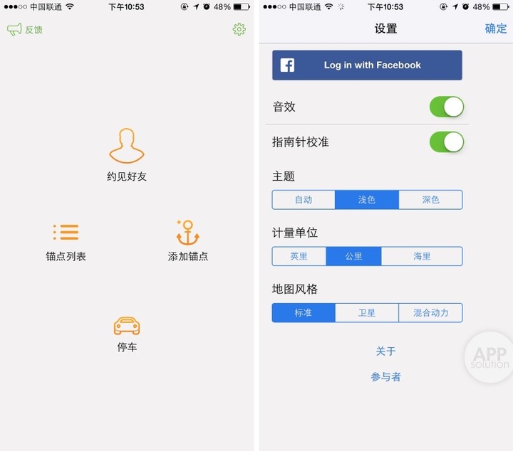 对了,使用前记得在设置页面切换公制单位,而应用「约见好友」功能需登录 Facebook,在国内使用不方便。