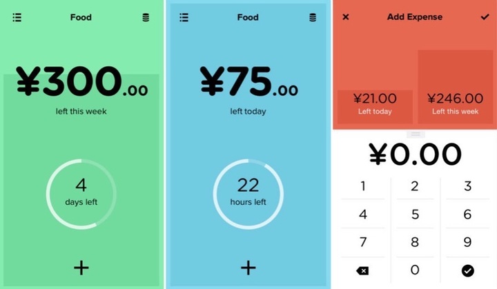 如果能够使用全英文的界面,我们推荐更耐用的 Pennies,它的优势是能根据昨天的花费来安排今天的开支。几乎全部依靠手势进行操作,用颜色警示花销速度,数字足够突出明显,因此经济情况可以一目了然。