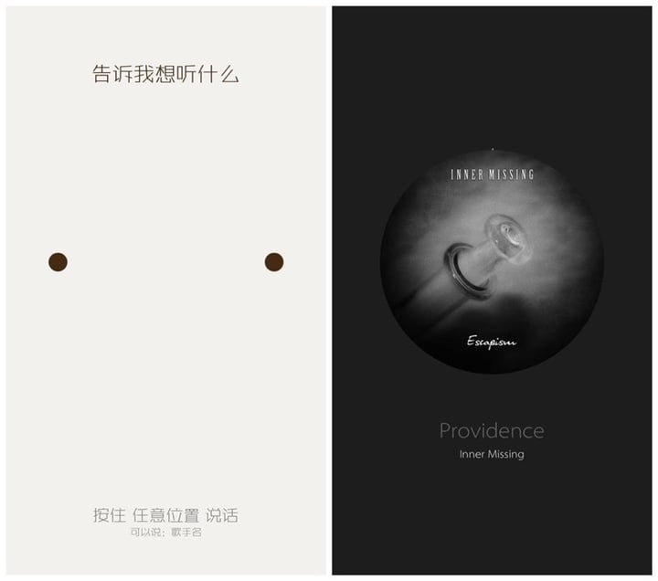 直接按住屏幕任意位置说话,乐流会根据你说了什么,迅速给你放些什么来听。只要你的中文、英文还算字正腔圆,从「给姐来首摇滚」、「老子想听个爵士」到 「You raise me up」都能准确的识别,并为你推送相应的歌曲。