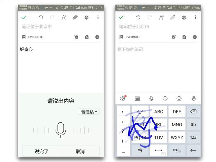 在手写输入时,讯飞可以多字连写,当写下第一个字的时候,无需等待被识别,即可直接输入下一个字。