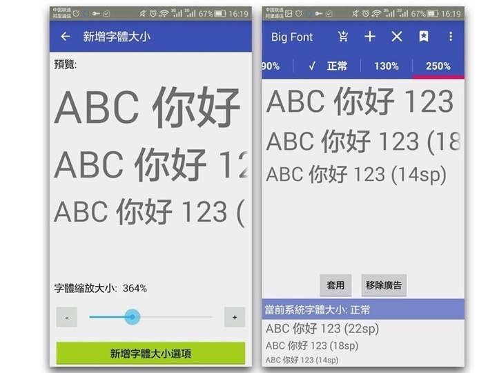 这时候可以试试 Big Font 。这款应用可以让用户自由定制手机字体,最大可以把系统的字体调到标准字体的 10 倍。