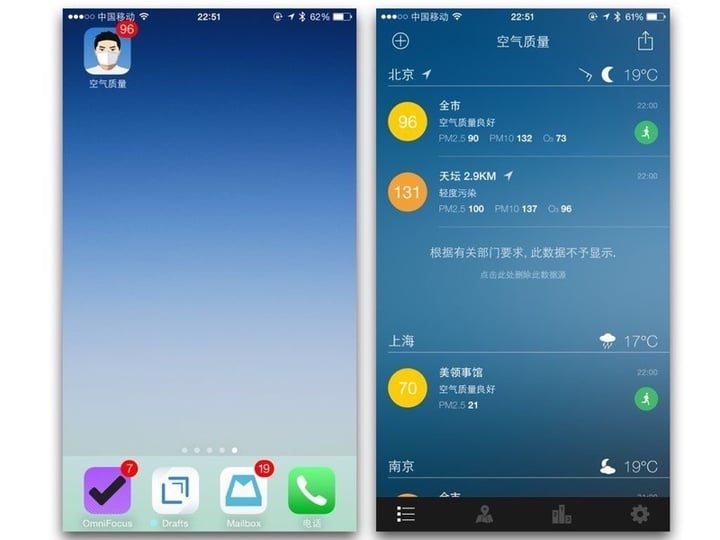 帮妈妈看 PM 2.5,决定出不出门:全国空气质量指数(iOS | Android)