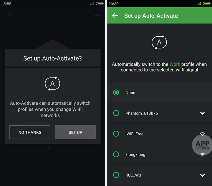 Hexlock 滑动切换场景的动画十分精致,自动切换功能带来的便捷体验则更具吸引力。开启这项功能后,你便可以为不同场景预设 WiFi 信号。当手机连接这些 WiFi 时,Hexlock 便会自动切换到对应的场景。