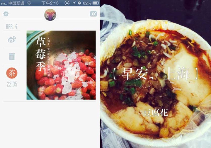 作为「黄油相机」的前身,「食日谈」是一款纯工具型的应用,斯日和设计团队最初选择了从美食的角度切入。因为照片加字的特点,「食日谈」吸引了一批偏文艺导向的用户。