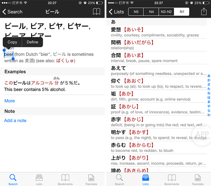 另外,Midori 带有分级单词表,对于参加日语水平考试的同学来说也很有用。