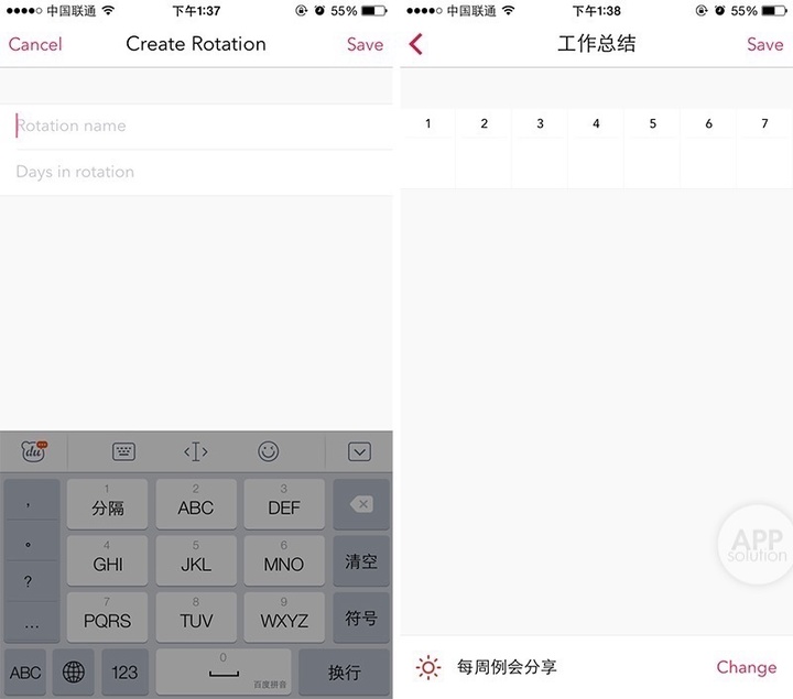 在应用主页右上角选择应用 Rotation,设定好起始日期,你的重复性任务将自动安排到月历中去。