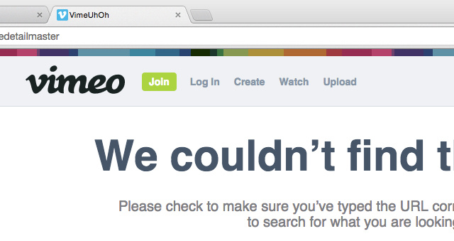 若页面不存在,Vimeo 会在浏览器标题栏中显示 Uh Oh。