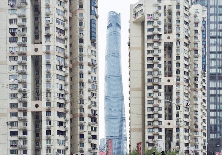 无论是单反还是手机拍出来的一些线条可能都不是你想要的,有的是镜头畸变造成的线条扭曲,有的是立体角度不够「工整」,比如下面这张仰拍的高楼大厦,立体几何与素描的常识都会告诉我们向上都延长线是交线。