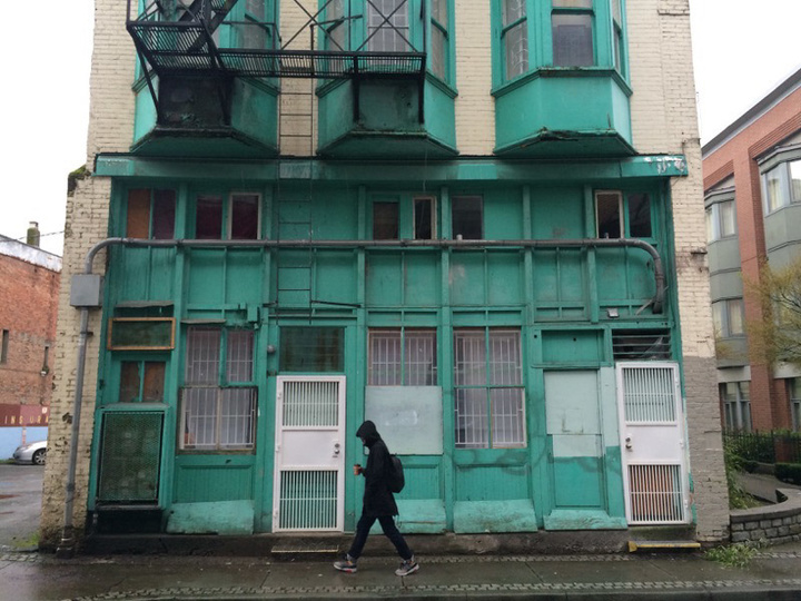 但从玩摄影的人眼睛里看,我们不一定要 100% 忠实再现, 下面这样的畸变处理就更工整别致一点,表现城市拥挤「夹缝」的感觉更好。