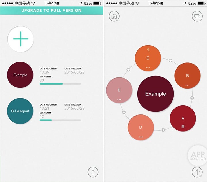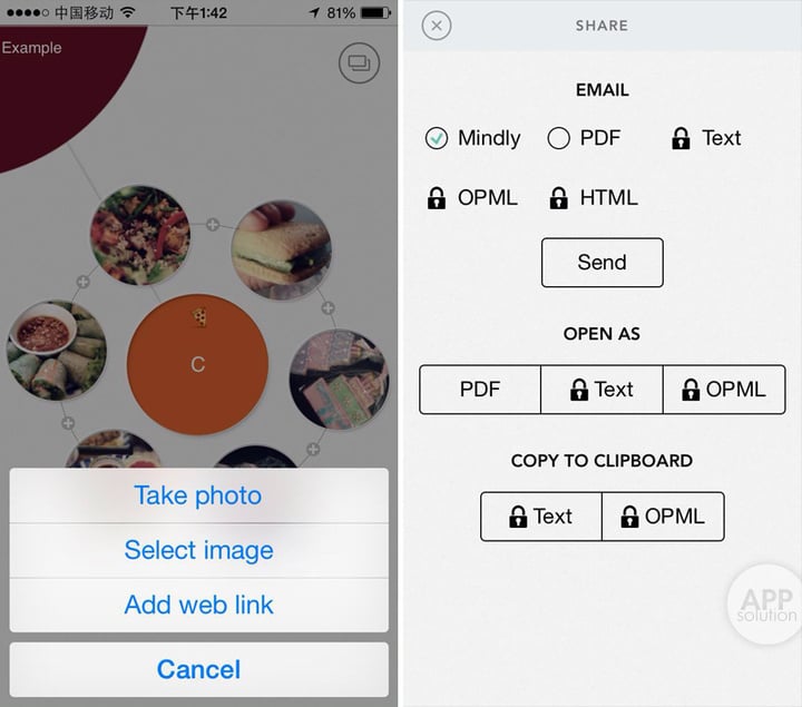 Mindly 适用于 iOS 7.0 + 的 iPhone 和 iPad 及 Android 4.4+ 设备, iOS 版 14.3 MB, Android 版 8.7 MB,有免费版和收费版可选。