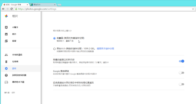 我们只要记得做好设定,以网页版的 Google 相簿来说,就是在设定中选择「高画质」上传即可,这样就能获得无限容量的高解析度照片上传空间。