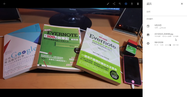 下面这张就是我用手机拍摄上传的照片,选择「高画质」上传,可以看到它的解析度维持在 15.9 MP 5312 × 2988,而且这张照片不会占用我的 Google 相簿或 Google 云端硬碟的空间容量。