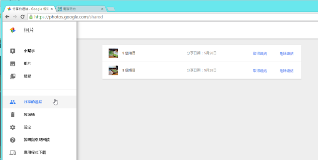 更棒的是,新版 Google 相簿增加了一个「分享的连结」页面,在这里可以控管所有我分享过的照片连结,并且随时解除分享。
