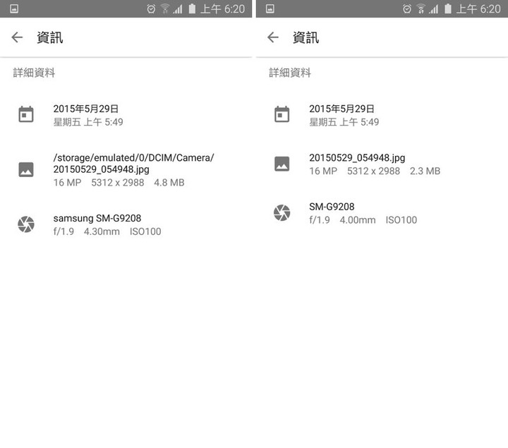 其实还是有的,下面是同一张照片的比较,左边是「原始照片」,右边是「上传 Google 相簿后的照片」,可以看到上传后的照片虽然解析度不变,但是体积下降了。