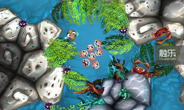 Jelly Reef 中,玩家需要通过手指控制水母,让水母们跟随海洋电流躲避障碍物,找到通往海底的路。在探索的海底世界的过程中,水母数量越多越安全,所以将水母集中在一起游戏会更容易。