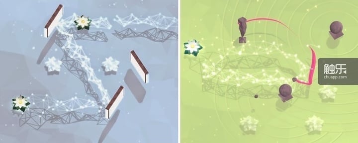 Breath of Light(光之息)中没有时间限制,没有关卡锁定。你无需在意是否会赢得3星,是否会导因耗时太长致关卡失败。因为游戏开发者似乎是在告诉玩家,你可以像浏览一本画册一样「翻看」这款游戏,无论是扉页开始欣赏,还是随手一翻的某一处,放松下来,只用心去体会。