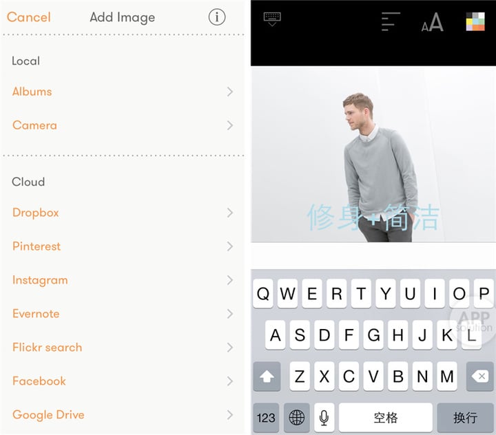 Curator 最赞的功能是提供多种方式插入图片。除了传统的相册,还支持从 Dropbox、Instagram、EverNote 等平台导入。插入的图片,仍然能进一步编辑。值得一说的是,完成的作品还可以导出为 PDF。