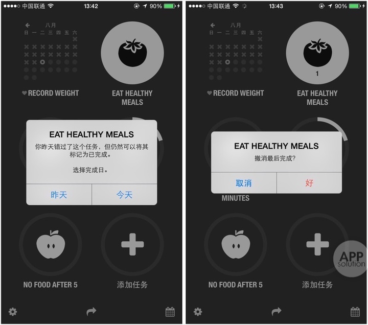 此外,假如有一天你忘记了打卡,或者是想拖到第二天完成,你可以在 Streaks 中为前一天的任务打卡,同时,你还能在打卡后通过摇一摇撤销已打卡的项目。
