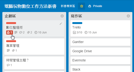经过前面四个步骤,你就能开始透过 Trello 去整理资料、管理专案、记录想法,但是当卡片、清单愈来愈多时,如何在一大片便利贴墙上去凸显重要的卡片呢?有两个方法。