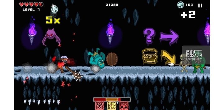 PunchQuest(雷霆铁拳)也是我很喜欢的游戏,虽然是3年前的游戏,上手后你一定不会认为它过时。游戏融合横版过关、跑酷、街机游戏,同时又把随机性的乐趣发挥到了极致。