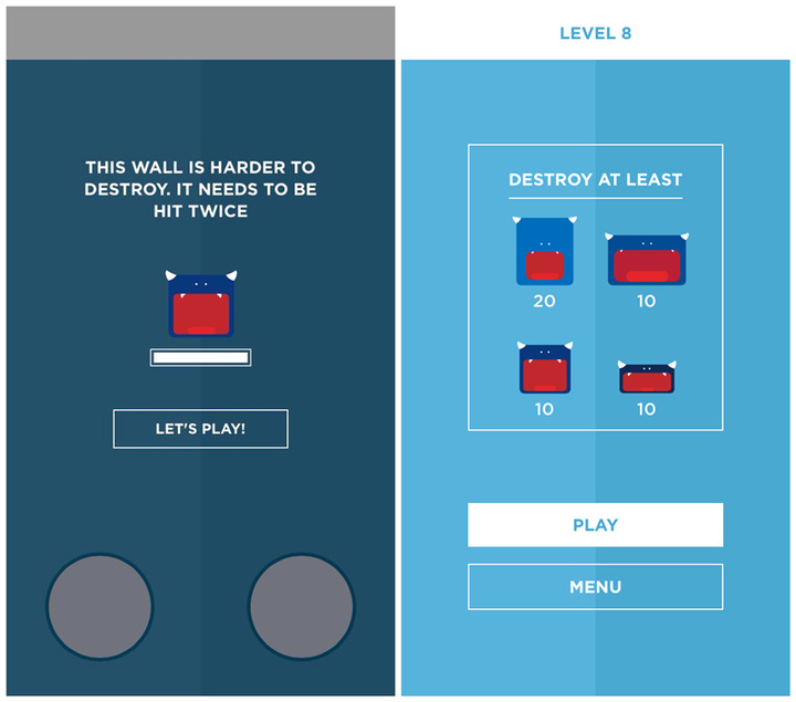 你只有在限定时间内抓住一定数目的怪物,才能顺利进入下一关。随着难度的增加,游戏里会出现拥有不同属性的怪物。比如个头更小不容易被抓住的小怪物、躲在一堵墙后面的怪物、躲在加固城墙后面的怪物…