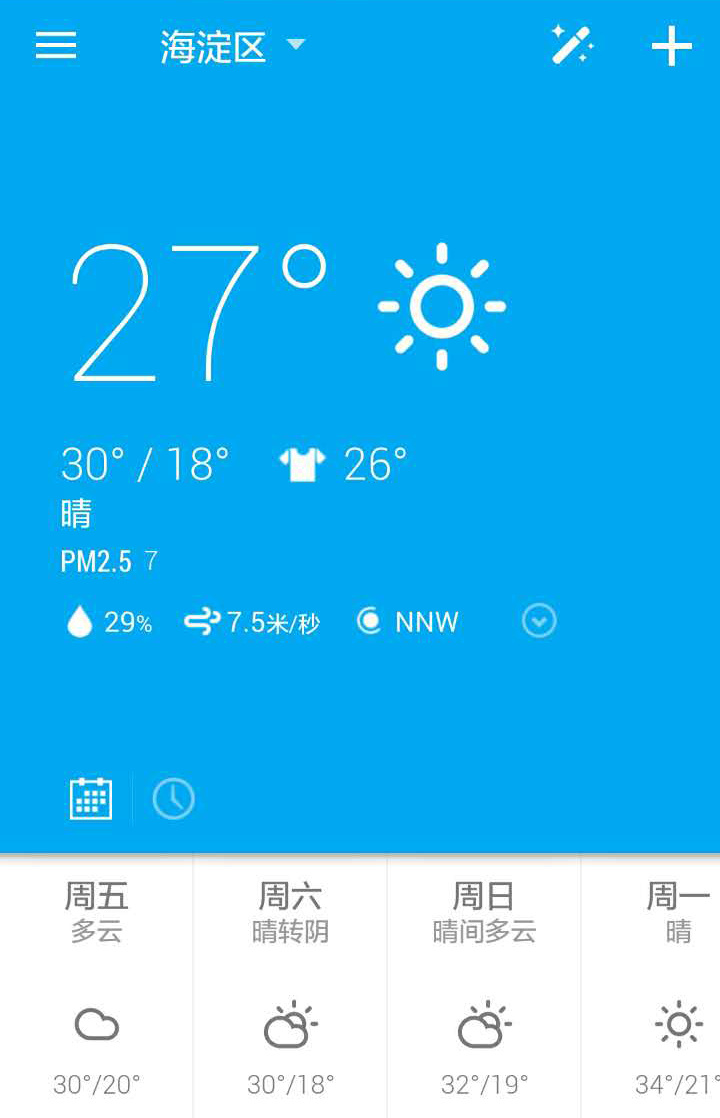 蓝色小角指向实时的「风吹过来的方向」,字母代表风向,配合着旁边的风速和湿度,你可以更好的判断自己所在位置的天气。