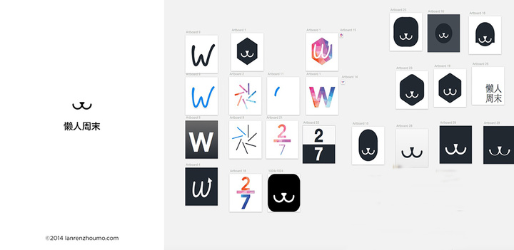 懒人周末的应用 LOGO 和页面左上角,都是一只黑白配色的主题猫,这只猫的形象是来源于英文字母 W 。
