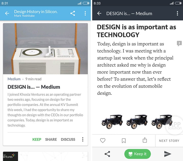 看到心动的文章,只需 Keep it,即可将其收入自己的库中。至于主题库是对大众开放,还是作为自己的私人知识库,就看个人的喜好了。