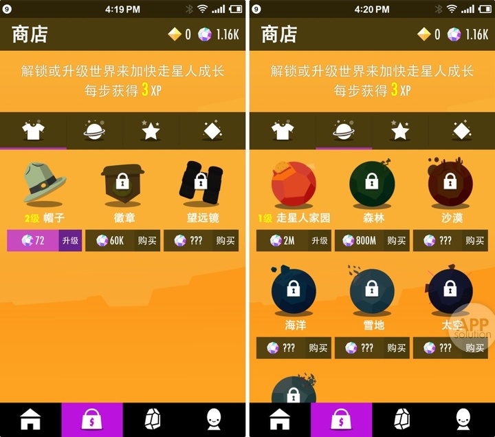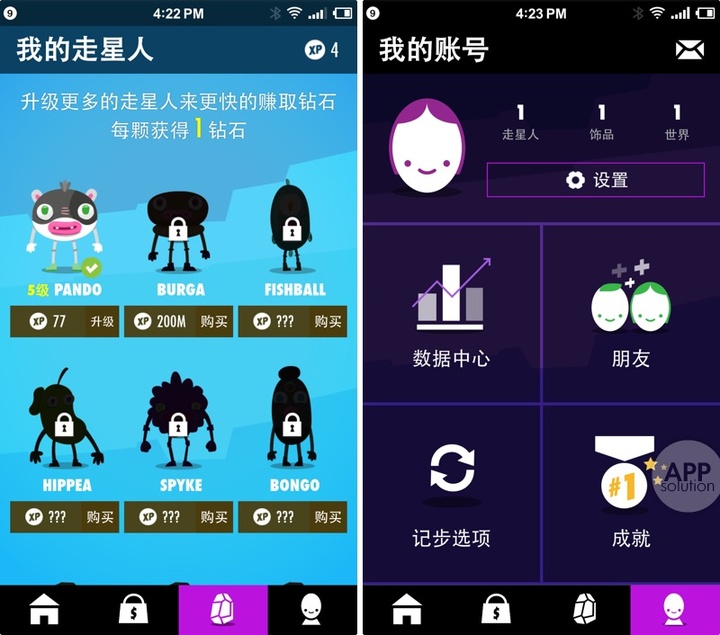 当你收集了足够多钻石,还可以解锁更多走星人。我知道对有收集癖的同学来说,这也是别样的乐趣。