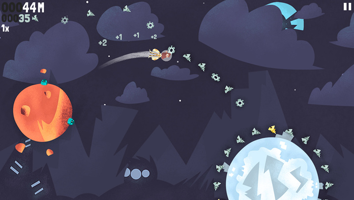 在 Beyond Gravity 中,玩家的目标是从一个旋转的星球跳向另外一个,争取存活最长的距离,同时要找准跳跃角度,以收集尽量多的星球间排列成抛物线的小零件。