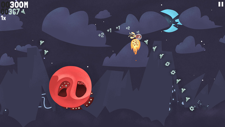 玩家只需单手操作,用手指按住屏幕任意一点为宇航员蓄能,在规定时间内按住时间越长,宇航员初始速度就会越大。在宇航员跳起后,玩家还可点击屏幕,让宇航员进行空中第二次跳跃,修正第一次出的差错。