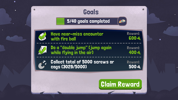 当然,除了简单的收集物品,玩家还需要完成一些小任务。比如「在 100 米到 120 米之间死掉」,或者是「在一轮游戏中险避( near-miss )两个火球」。