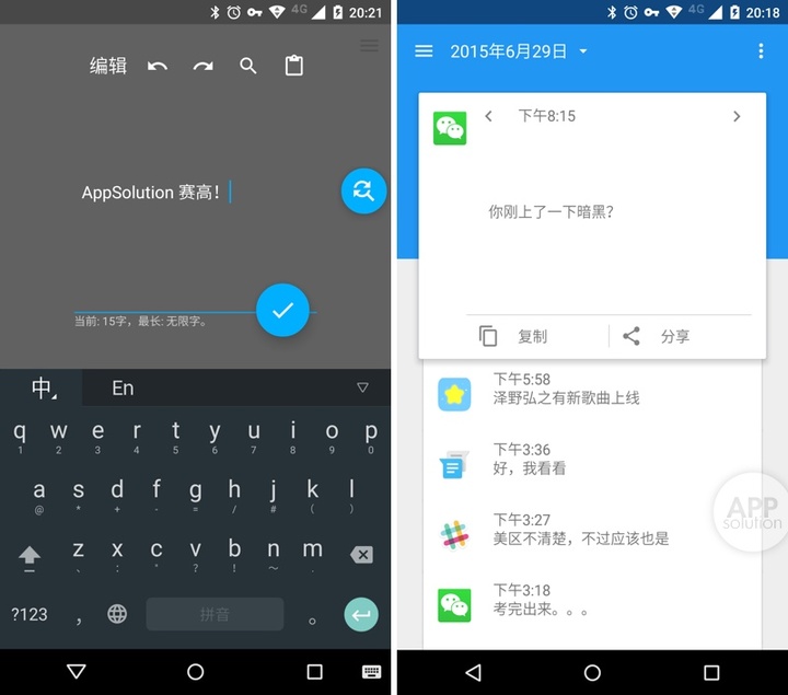Inputting+ 适用于 Android 5.0+ 设备,大小 3.0 MB,免费,「输入时间线」功能需要内购解锁,价格 0.99 美元/6 元人民币。多重剪贴板功能需要同时安装剪纸堆应用。