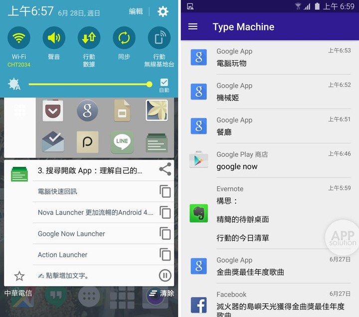 这部分我用 Pushbullet、剪纸堆、Type Machine 三个 App 建立起我的工作流程,Pushbullet 的用途是让我在电脑手机之间同步剪贴的文字内容,而「剪纸堆」可以储存多笔剪贴内容,然后 Type Machine 又能记住我在任何 App 输入过的非密码内容。