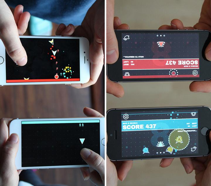 因此两名玩家需要面对面来玩游戏,游戏过程中需要不停移动飞船来攻击对方,子弹撞击的效果也很绚。这种面对面玩法很适合在办公室互动,想放松时不妨和朋友来一局。