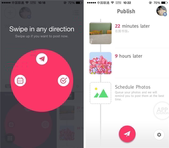 Publish 相当于一个 Instagram 草稿箱,而且具有提醒的功能。在定时发送方面虽然并非全自动,但是能做到这样已经很不错了,况且她的颜值还很高,你说是不?